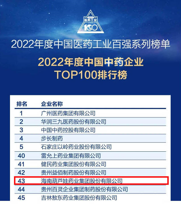 BJL平台药业集团连续4年荣登“中国中药企业TOP100排行榜”,排名上升至第43位